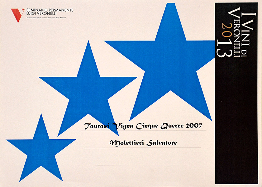 I Vini di Veronelli: 3 Stars in Taurasi DOCG “Vigna Cinque Querce” 2007