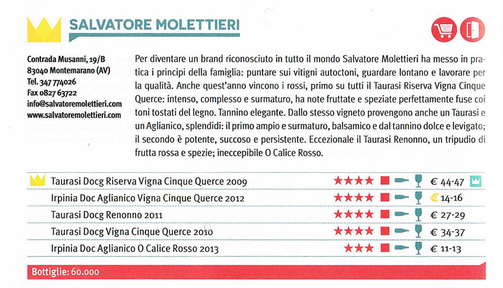Gold Guide I Vini di Veronelli 2017 – Super Three Stars 2017 for Taurasi Riserva Vigna Cinque Querce 2009
