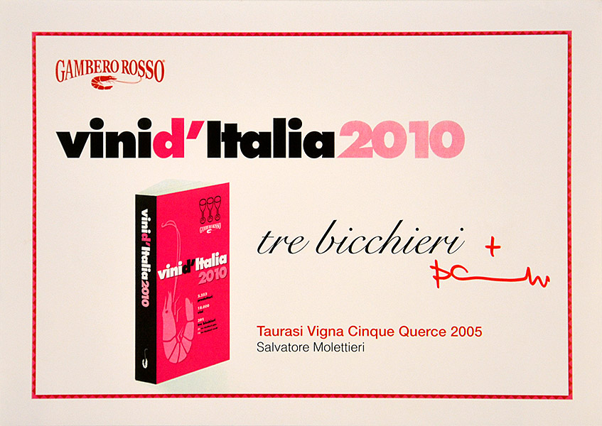 Wines of Italy Gambero Rosso: 3 Glasses in Taurasi DOCG “Vigna Cinque Querce” 2005